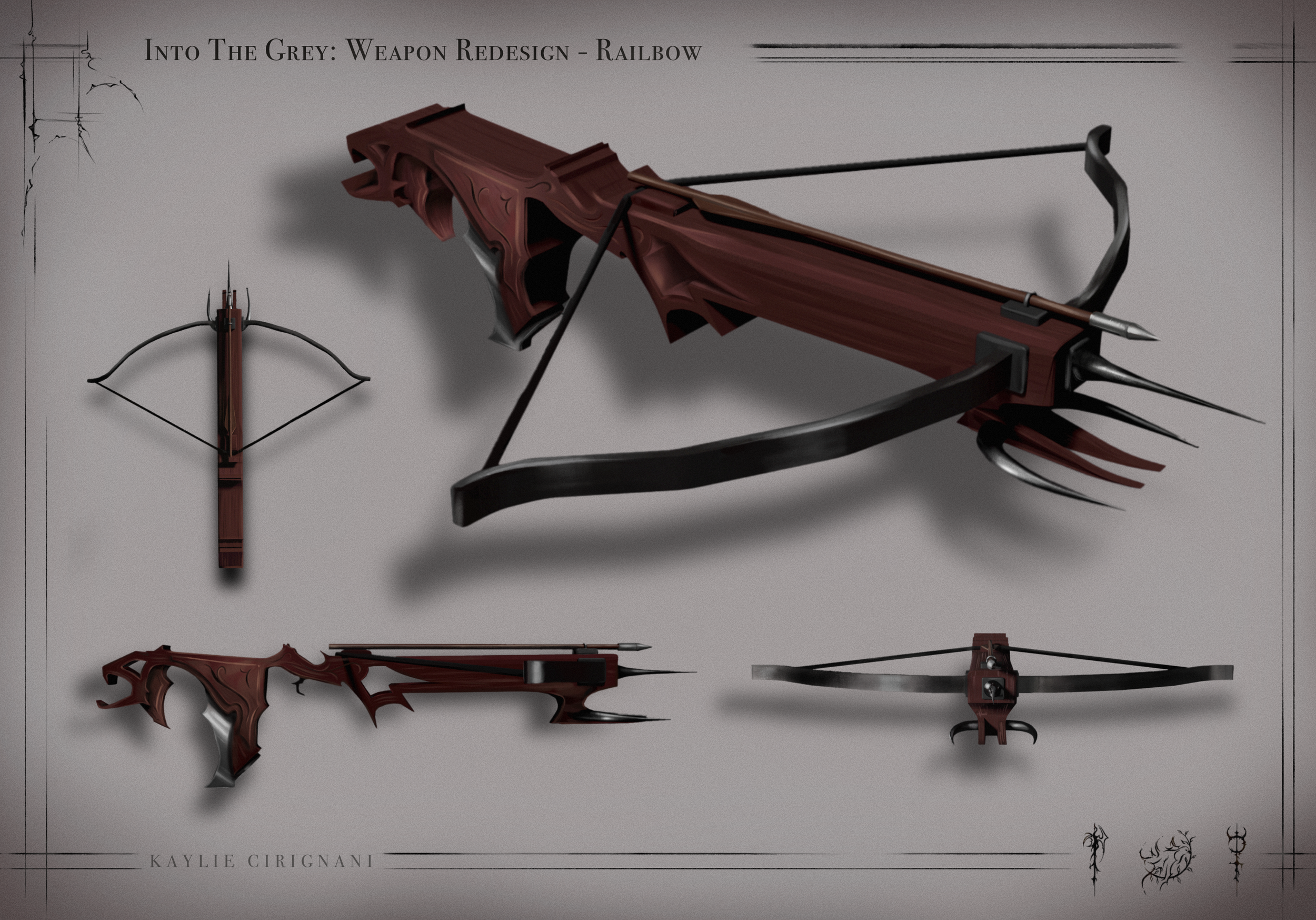 Another weapon that appears in the music videos and comic series is a railgun. To make this historically relevant, I developed a crossbow with the same shape and form of a railgun or machine gun.
